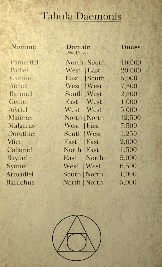 ソロモン王の72柱などの伝承を想起させる「守護精霊(あるいは悪魔)のリスト」